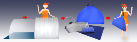 4. | Loose the connecting Straps on the Tent, and spread completely. Tie up the Sauna Dome Frame with Tent. There is a hole for foot part, and the curtain is for head part. |
