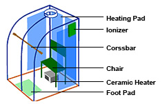 IONIZER: OPTIONAL item, is placed on the sauna tent, and comes with a dial control box . You can adjust time from 0 to 30 minutes.The Ionizer generates a large number of negative ions and some oxygen, just as do nature's ionizers, like waterfalls and lightning. |