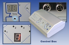 The PH-2A Infrared Slim Body Wrap System is composed of a control box, a thermal blanket wraps, a main power lead and 3 connection leads. The control box retains a memory of the last settings used | ||||||||||||||||||||||||