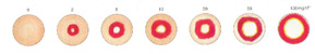 6. after 5 - 7 minutes the test disc is saturated with the solution,