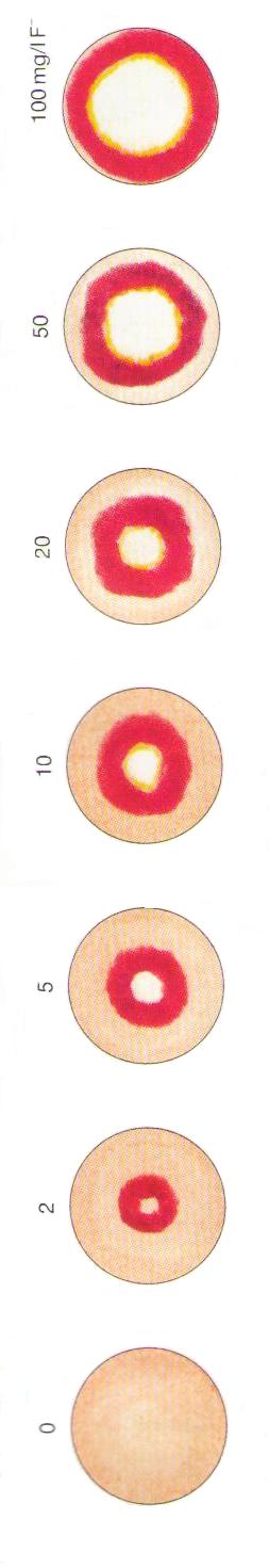 DetailsThe fluoride test is especially suited for rapid control of fluoride concentrations. Its purpose is to define concentration ranges and detect values which fall short of or exceed given limits.