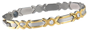 New! Q-Link Women's Executive Bracelet ![]() New! Graceful curves and gold plated solid lines, accented with elegant cubic zirconia gemstones, combine professional style with personal sophistication. Dual SRT-3 wafer design for maximum performance. Superbly comfortable. Specifications Width: 7mm Thickness: 2.5mm |