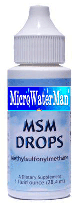 As most of you are aware MSM Water from Rich Distributing has not been available for several months and we were informed that this situation will continue for an unspecified period of time. This is an unacceptable situation for many customers due to the importance of this product. We are now pleased to announce that we now have an even more effective product from MicroWaterMan. We invite you to try this product and we believe that you will be very thankful for the diligence that lead to the creation of MicroWaterMan's MSM Water Drops. You can learn more about this MSM Drops or place your order by clicking on MSM Drops or Order Now