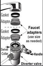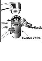 Screw the diverter valve onto the faucet, turning swivel collar to tighten. Make certain that the gasket is positioned securely between the diverter valve and the faucet or adapter. Rotate diverter valve stem to desired position. The swivel color may need retightening.
