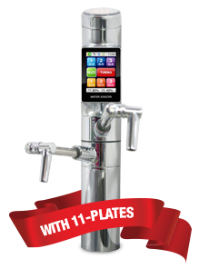 Plates Solid/Mesh Hybrid 11 plates dipped and baked. Plates Size 7" x 4 3/4" Surface Area 385 square inches Negative ORP Levels Up to -1050 under ideal conditions pH Levels 1.7-12.0 under ideal conditions Power Settings 4 Alkaline, 3 Acidic, 1 Neutral (including Turbo). Fully adjustable with 55 presets. Plate Material Solid/Mesh Hybrid Medical grade, strengthened titanium plates—dipped multiple times in platinum Retail Pricing Full retail $4,295—Ask about sale prices! Filtration Dual filters Ultra filtration .01 Micron (with Standard filter option) Wattage 750 watts at maximum setting Operational Controls Digital LCD touch screen Filter Material