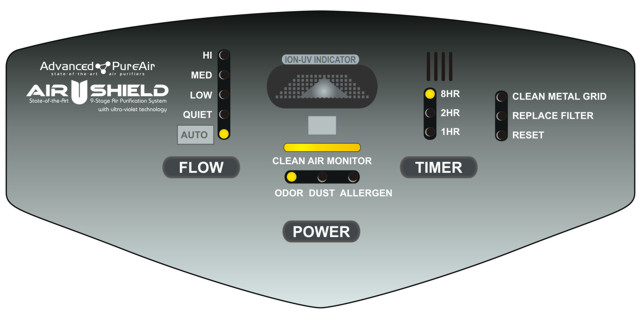 How does the Automatic Air Quality Sensor work? The “Function” setting on the Air Shield allows the user to turn on the Automatic Air Quality Sensor. When turned on, the unit continuously samples the surrounding air through a small opening on the front of the unit. When the quality of the air falls to a pre-determined minimum level the air purifier will automatically turn on. If the unit senses a small rise in the surrounding pollutants, such as an increase in pollen from an open door, it will turn the fan on low. If the senor detects a large rise in pollutants, such as someone smoking a cigar, it will turn the fan on high.